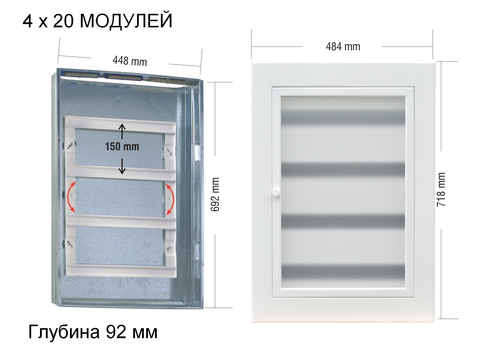 | Вместимость щита: 80 модулей (4 ряда по 20 модулей) |