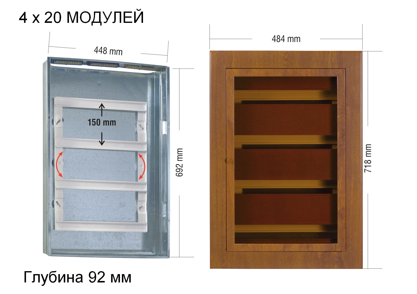 Вместимость щита: 80 модулей (4 ряда по 20 модулей)